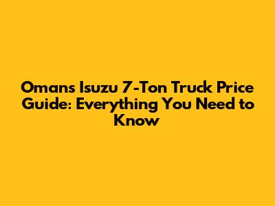 Understanding the Isuzu 7-Ton Truck Market in Oman