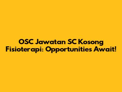 OSC Jawatan SC Kosong Fisioterapi: Opportunities Await!