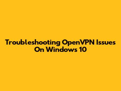 Troubleshooting OpenVPN Issues On Windows 10