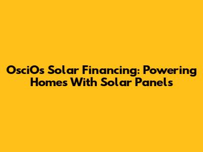 OsciOs Solar Financing: Powering Homes With Solar Panels