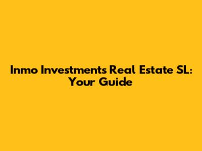 Inmo Investments Real Estate SL: Your Guide