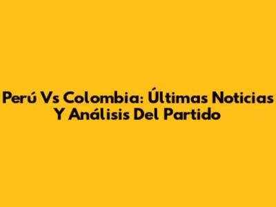 Perú Vs Colombia: Últimas Noticias Y Análisis Del Partido