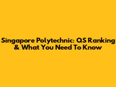 Singapore Polytechnic: QS Ranking & What You Need To Know