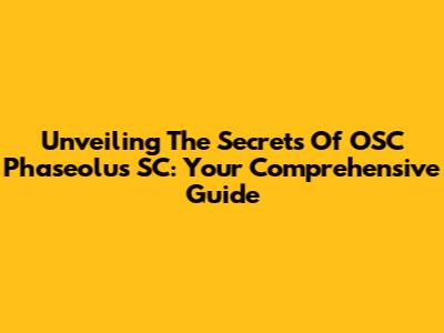 Unveiling The Secrets Of OSC Phaseolus SC: Your Comprehensive Guide