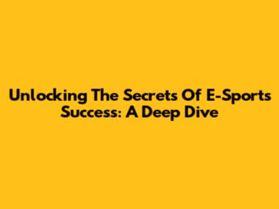 Unlocking The Secrets Of E-Sports Success: A Deep Dive