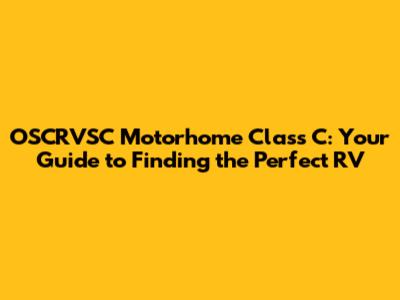 Key Resources for Finding OSCRVSC Motorhome Class C
