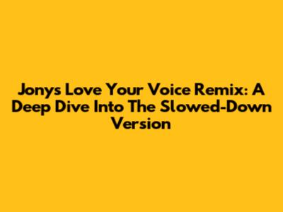 Jony's 'Love Your Voice' Remix: A Deep Dive Into The Slowed-Down Version