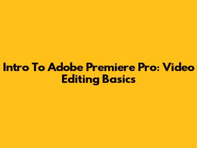 Intro To Adobe Premiere Pro: Video Editing Basics