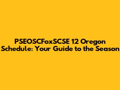 Where to Find the Official PSEOSCFoxSCSE 12 Oregon Schedule