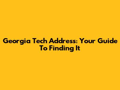 Georgia Tech Address: Your Guide To Finding It