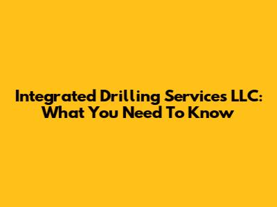 Integrated Drilling Services LLC: What You Need To Know