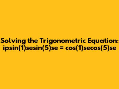 Hey guys! Today, we're diving into a fun trigonometric equation: ipsin(1)sesin(5)se = cos(1)secos(5)se. Sounds intimidating? Don't worry, we'll break it down step by step. Our goal is to find the value(s) of 'se' that satisfy this equation. Trigonometric equations can sometimes look complex, but with the right approach and a few key trigonometric identities, we can simplify them and find the solutions. Let's get started!