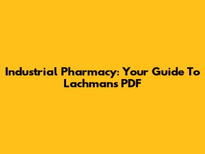 Industrial Pharmacy: Your Guide To Lachman's PDF