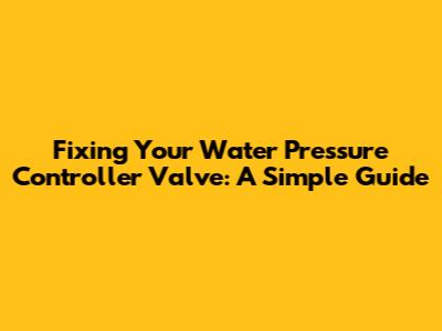 Fixing Your Water Pressure Controller Valve: A Simple Guide