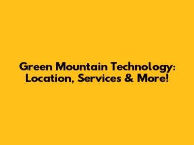 Green Mountain Technology: Location, Services & More!