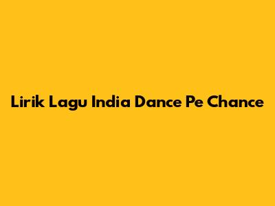Lirik Lagu India 'Dance Pe Chance'