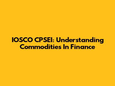 IOSCO CPSEI: Understanding Commodities In Finance