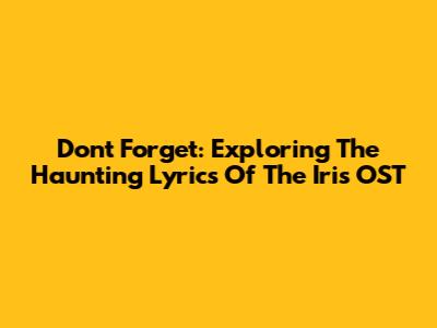 Don't Forget: Exploring The Haunting Lyrics Of The Iris OST