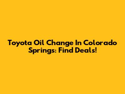 Toyota Oil Change In Colorado Springs: Find Deals!