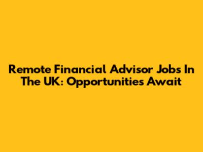 Remote Financial Advisor Jobs In The UK: Opportunities Await
