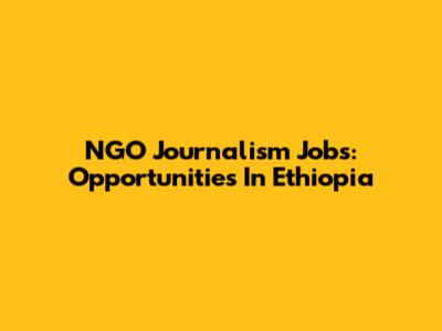 NGO Journalism Jobs: Opportunities In Ethiopia