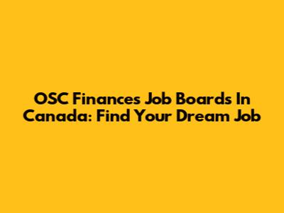OSC Finances Job Boards In Canada: Find Your Dream Job