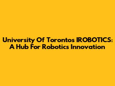 University Of Toronto's IROBOTICS: A Hub For Robotics Innovation