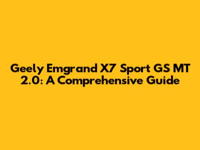 Geely Emgrand X7 Sport GS MT 2.0: A Comprehensive Guide