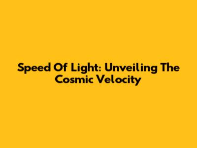 Speed Of Light: Unveiling The Cosmic Velocity