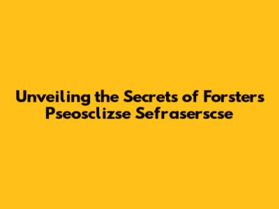 How to Learn More About Pseosclizse Sefraserscse Forster