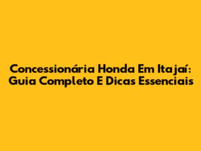 Concessionária Honda Em Itajaí: Guia Completo E Dicas Essenciais