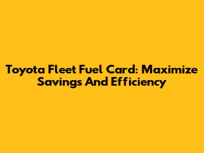 Toyota Fleet Fuel Card: Maximize Savings And Efficiency