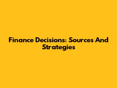 Finance Decisions: Sources And Strategies